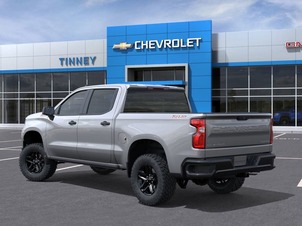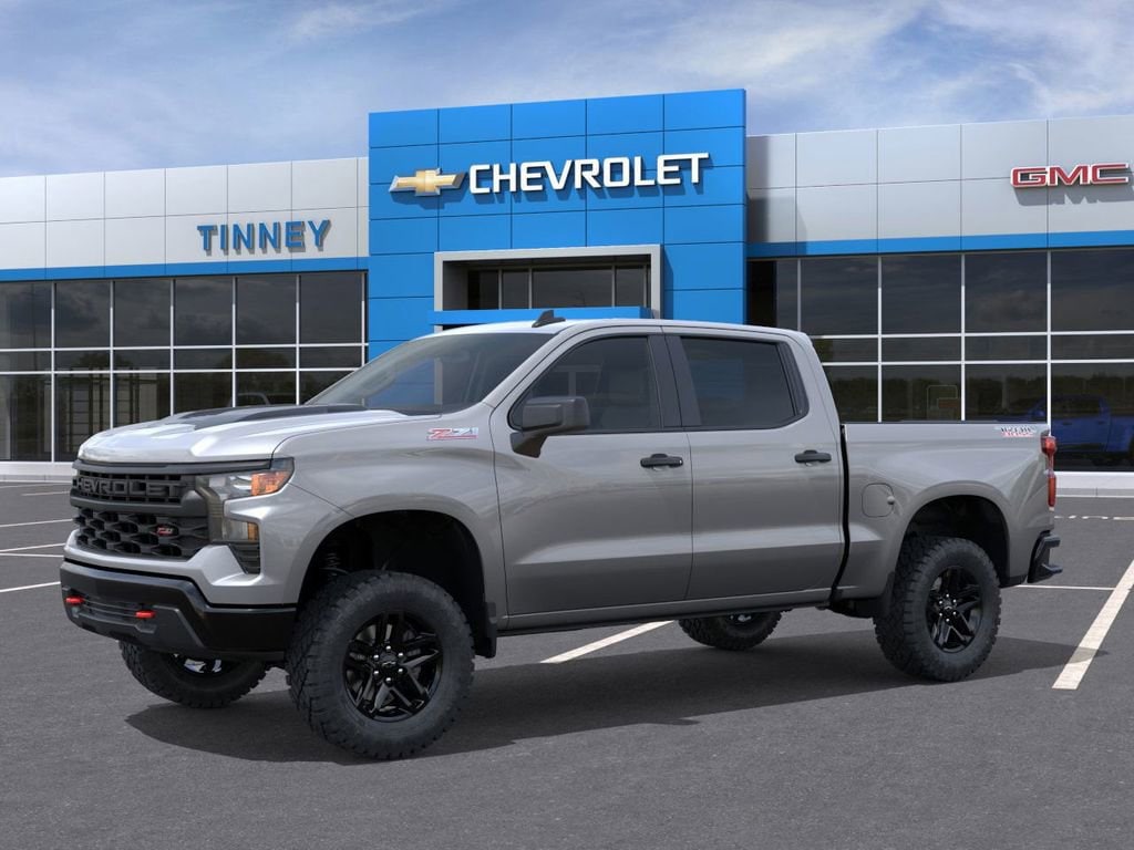 This 2026 Chevrolet Silverado 1500 Custom Trail Boss in Sterling Gray Metallic is built for strength and capability, featuring a TurboMax 2.7L I4 turbocharged engine with 310hp and 430 lb-ft of torque, paired with 4WD for confident performance in any condition. The Crew Cab design ensures plenty of space for passengers and gear.