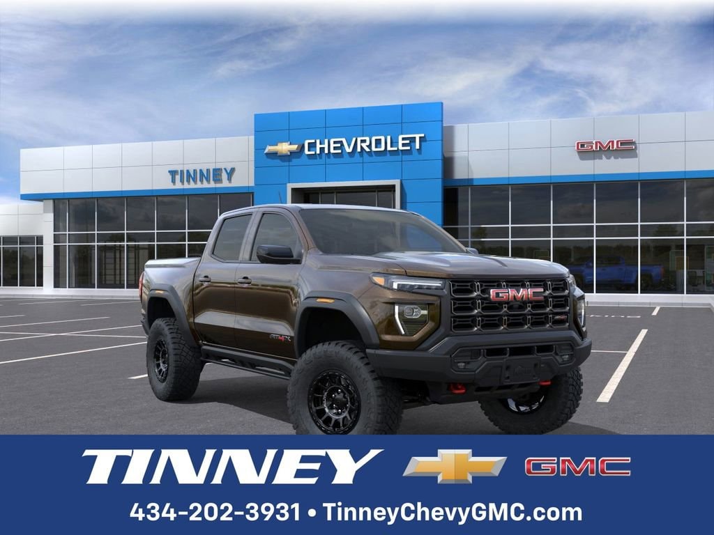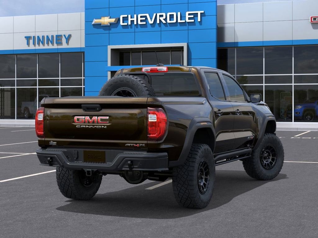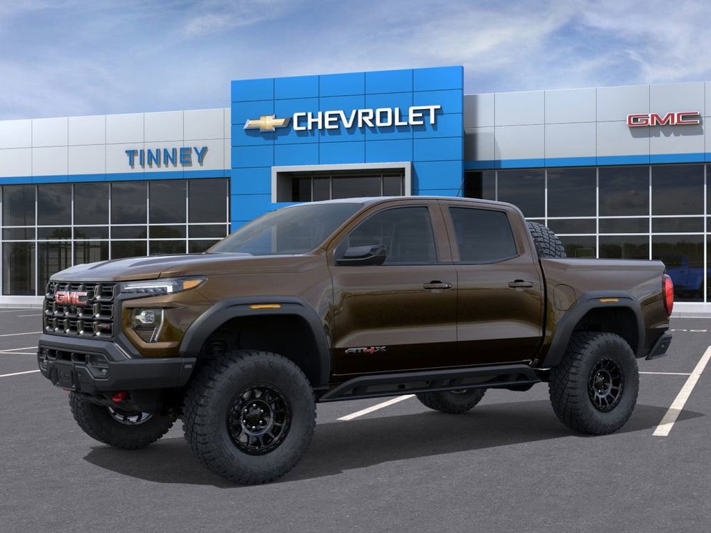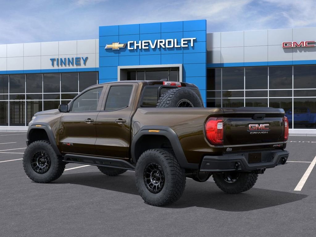 This 2025 GMC Canyon AT4 in Deep Bronze Metallic is a 4WD crew cab truck equipped with the TurboMax 2.7L turbocharged I4 engine, delivering 310 horsepower and 430 lb-ft of torque for strong towing and off-road capability.