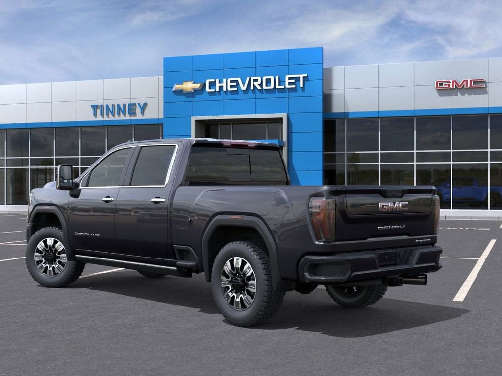 This 2025 GMC Sierra 2500HD Denali in Titanium Rush Metallic is a 4WD crew cab powered by the robust Duramax 6.6L V8 turbodiesel engine paired with a 10-speed automatic, making it well-suited for heavy towing and demanding tasks.