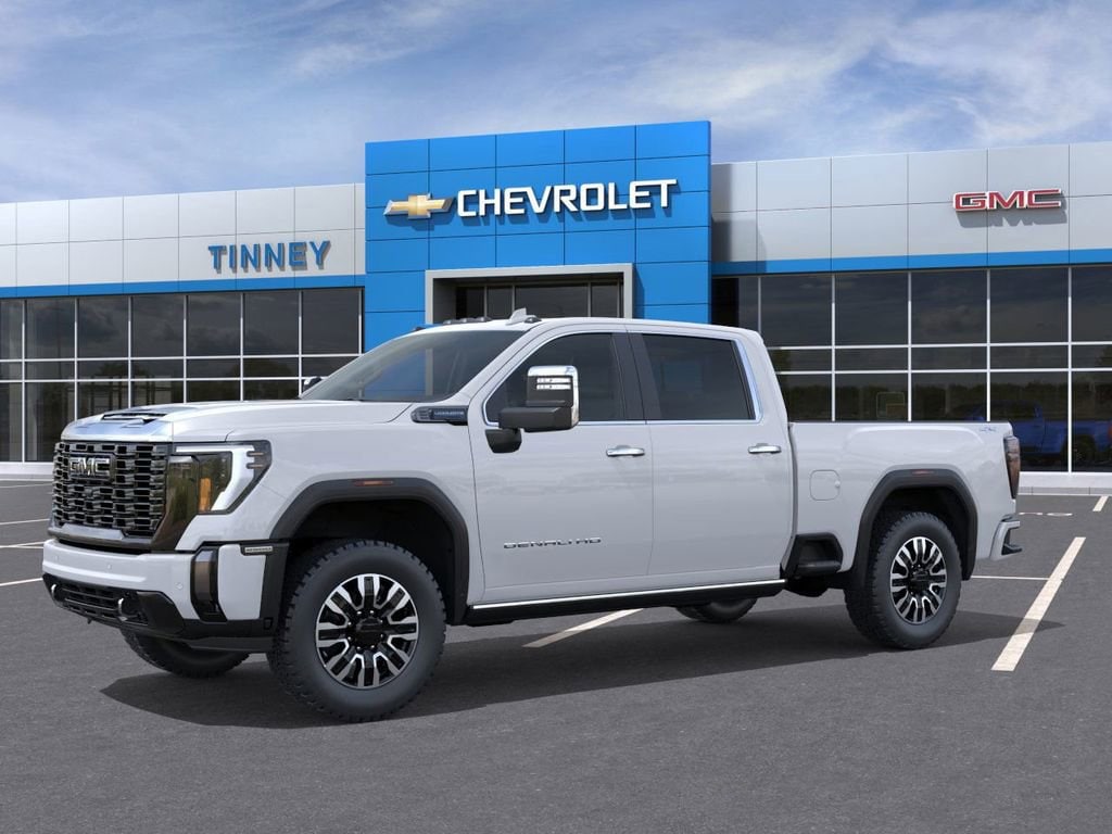 This 2026 GMC Sierra 2500HD Denali Ultimate in Glacier White Tricoat is a powerful 4WD crew cab truck featuring a Duramax 6.6L V8 turbodiesel engine and a 10-speed automatic transmission, built for serious towing and off-road capability.