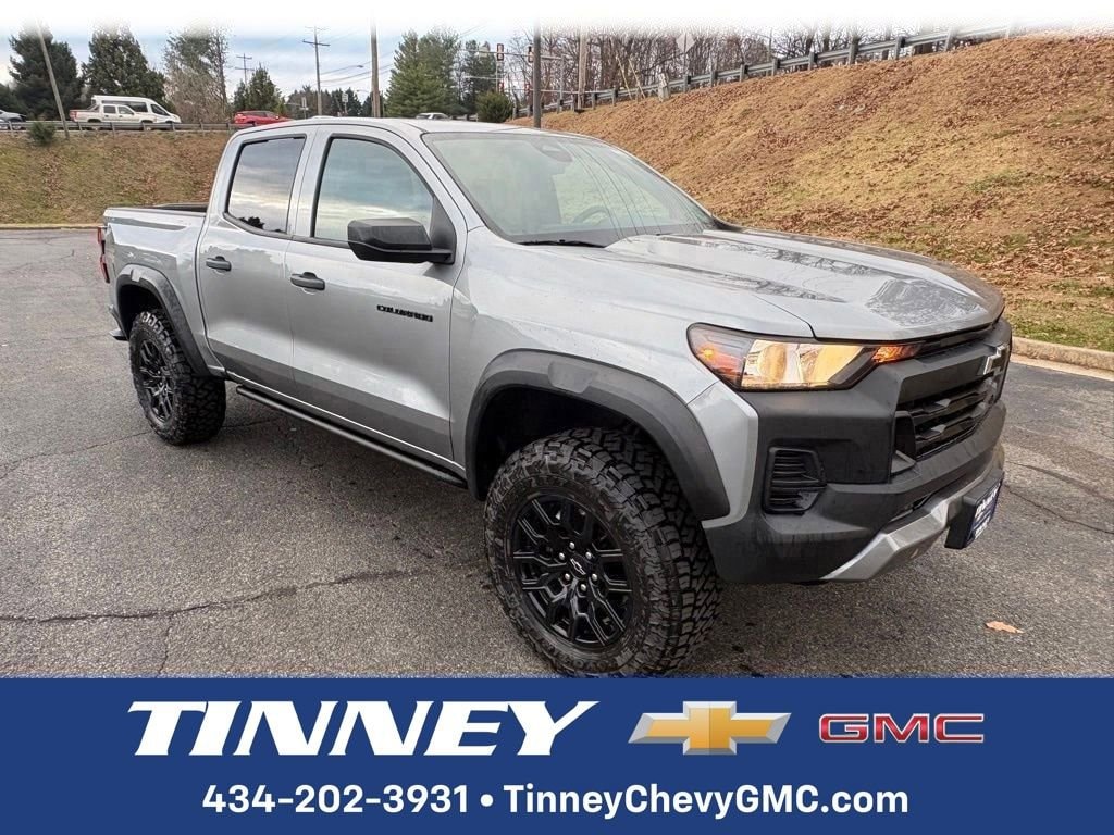 This 2024 Chevrolet Colorado Trail Boss in Sterling Gray Metallic is a 1-owner, accident-free local trade, offering 4WD capability and a turbocharged 2.7L I4 engine with 310hp. The 8-speed automatic transmission and advanced trailering features make this Crew Cab ready for both work and adventure, while delivering 18/23 city/highway mpg.Inside this Colorado Trail Boss, you'll find Jet Black cloth seats, an 11.3-inch advanced color LCD display, and a 6-speaker audio system with Apple CarPlay, Android Auto, SiriusXM, and wireless phone projection. The navigation system, steering wheel audio controls, and split folding rear seat add convenience, while the Trail Boss Convenience Package and manual rear-sliding window enhance comfort and utility.Chevy Safety Assist equips this truck with automatic emergency braking, forward collision alert, lane keep assist with lane departure warning, following distance indicator, and front pedestrian and bicyclist braking. IntelliBeam automatic high beams and a security system add extra peace of mind.The exterior features 18-inch black high gloss aluminum wheels, a rear-window electric defogger, and bold Trail Boss styling, making this Colorado stand out on any road or trail.Awards: Motor Trend Truck of the Year.