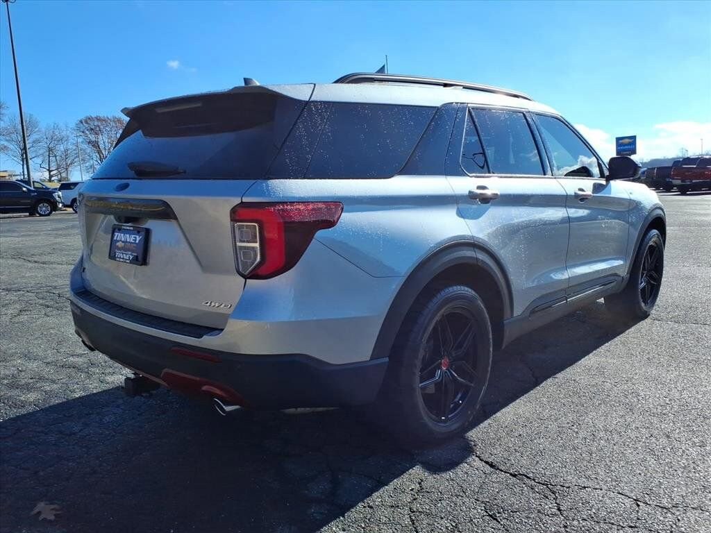 The exterior of this Explorer ST-Line stands out with 21-inch aluminum wheels and a sleek, modern design, making it a great choice for families and commuters alike.
