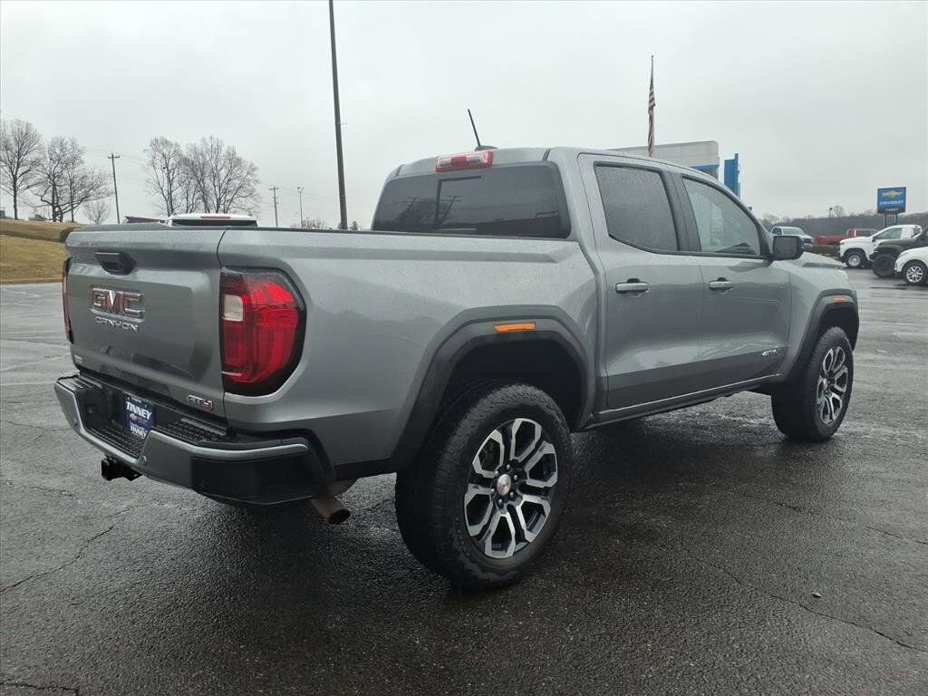 This 1-owner, accident-free, local trade 2023 GMC Canyon AT4 Crew Cab in Sterling Metallic delivers impressive power with its TurboMax 2.7L I4 turbocharged engine, producing 310 horsepower and 430 lb-ft of torque paired with 4WD and an 8-speed automatic transmission. It achieves 17 city/21 highway MPG, making it efficient for its class.
