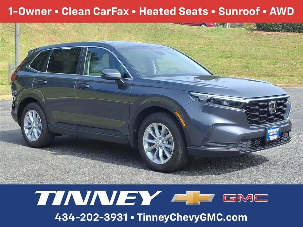 This 2025 Honda CR-V EX with AWD is a 1-owner, accident-free SUV with an odometer 5,833 miles below the market average. Powered by a 1.5L turbocharged engine paired with a CVT, this CR-V offers a great balance of efficiency and performance, while the Solar Silver Metallic finish gives it a modern look.